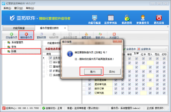 亞拓軟件旗下的亞拓管理軟件紅管家送貨單軟件紅管家出納記賬軟件等支持在軟件中設置多個操作員進行登錄軟件。許多用戶存在業務員離職后,其操作員權限仍存在,可以繼續使用其姓名進行開單操作。為了避免選擇離職員工登錄軟件開單,軟件支持可以刪除已離職或者不允許再登錄軟件的操作員的登錄權限。
