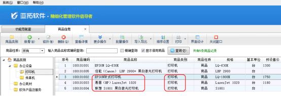 然后到“打印機”類別下從新查看商品信息,剛才的3個商品類別都已經(jīng)改變了,其界面如圖3所示。