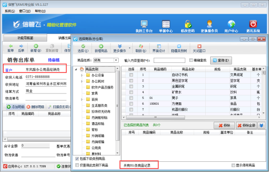 信管飛RMS軟件信管飛倉庫管理軟件信管飛送貨單軟件開單時都支持選擇系統內已錄入的商品信息,進行快速選擇商品來開單。選擇商品時在選擇商品窗口默認是可以顯示所有商品(圖1),但是部分用戶在選擇商品時只需要顯示此客戶相關的商品,如何設置呢?本篇文章我們以信管飛RMS 專業版軟件為例來詳細介紹一下如何設置在選擇商品窗口僅顯示客戶相關商品?