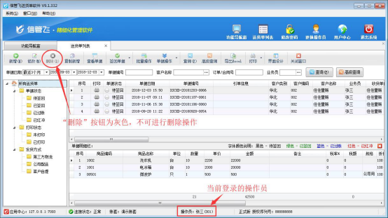 送貨單軟件如何設置操作員不可刪除送貨單?