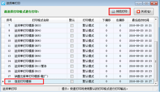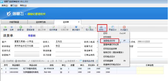 登錄軟件,在功能導航窗點“業務處理”—》“新開送貨單”,進入新開送貨單界面,錄入客戶信息等數據后,確認開單后,點擊“打印”—》“選擇格式打印”,如下圖所示: