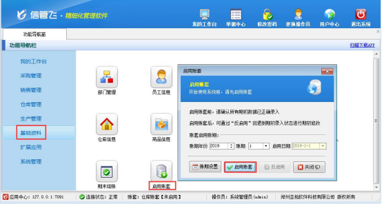 信管飛倉庫管理軟件如何啟用賬套?
