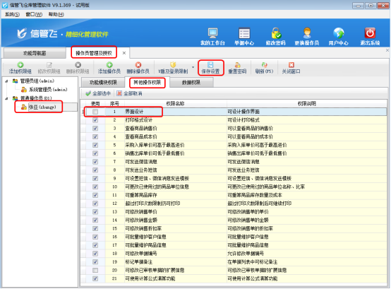 倉庫管理軟件如何設置操作員不可進行界面設計?
