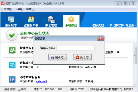 應(yīng)用中心的管理和配置會(huì)對(duì)軟件的運(yùn)行產(chǎn)生重大影響,因此軟件提供增強(qiáng)安全驗(yàn)證功能,啟用安全驗(yàn)證后執(zhí)行賬套管理、系統(tǒng)參數(shù)設(shè)置等功能時(shí)會(huì)要求輸入密碼,驗(yàn)證密碼通過(guò)后才可以進(jìn)行相應(yīng)操作。下面我們以信管飛出納記賬軟件應(yīng)用中心為例詳細(xì)介紹下如何啟用安全驗(yàn)證功能。