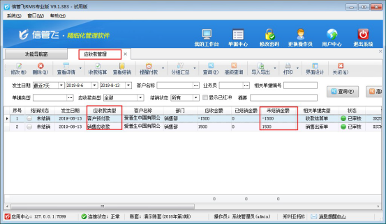信管飛RMS軟件星光版、標準版、專業(yè)版都支持錄入客戶預付款,客戶預付款是客戶付定金給我們,在客戶實際發(fā)貨后會收回應收款,此時軟件收款結算中支持應收款可以抵消之前的預付款,本文以“信管飛RMS專業(yè)版”為例,示范下應收款如何抵消客戶預付款?