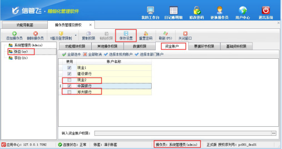 歡迎下載可控制操作員僅能查看屬于自己的資金賬戶權限的出納軟件信管飛出納記賬軟件