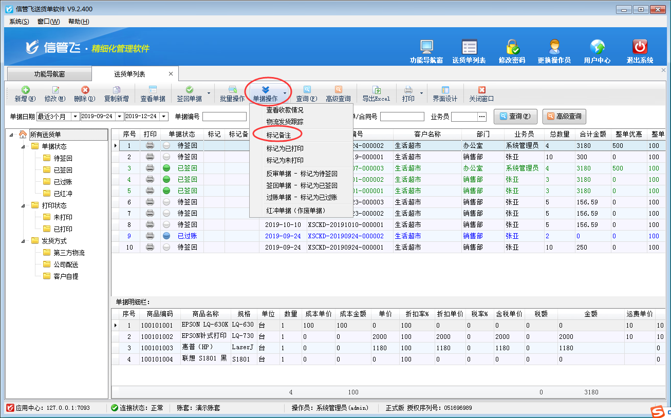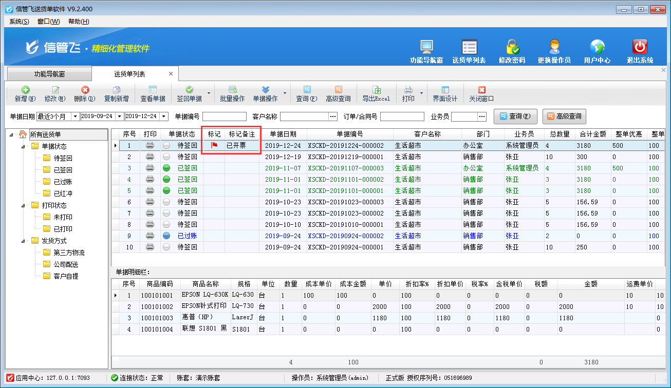 歡迎免費下載試用這款可以對送貨單列表標記備注送貨單打印軟件信管飛送貨單軟件