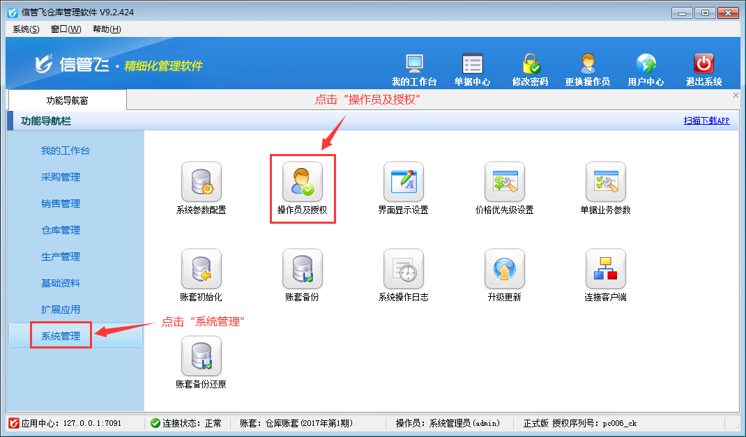 執(zhí)行賬套初始化操作后,會刪除賬套內相應的數(shù)據(jù),因此務必提前做好備份,謹慎操作!為了避免操作員誤操作,導致數(shù)據(jù)丟失,軟件內支持設置操作員不可進行賬套初始化操作,下面以信管飛倉庫管理軟件為例來演示一下具體的操作步驟。