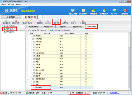 歡迎免費下載試用可控制操作員的收支類別權限的出納軟件信管飛出納記賬軟件