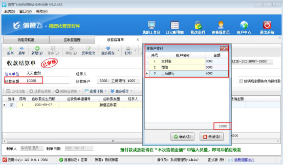 信管飛出納記賬軟件、信管飛RMS軟件等都支持管理往來(lái)賬,對(duì)應(yīng)收應(yīng)付款支持結(jié)算操作,有時(shí)存在一筆應(yīng)收款多個(gè)資金賬戶結(jié)算的情況,針對(duì)此種情況,以“信管飛出納記賬軟件”為例,如何多賬戶結(jié)算?