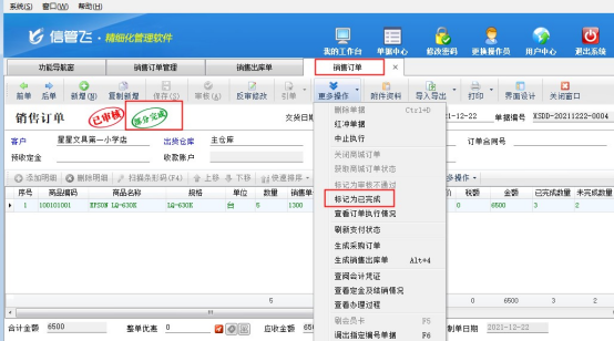 如存在引用部分訂單數量,之后不再引用此訂單開單,可手動標記訂單為已完成狀態。如下圖: