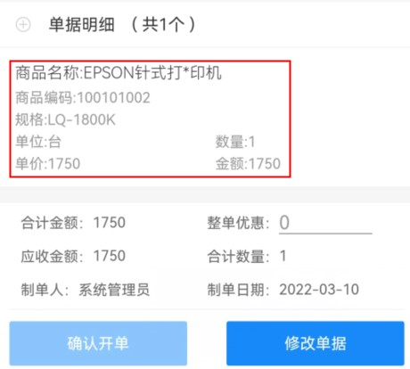 界面設計配置完成后,打開微信端軟件開單界面。會顯示“顏色”列,如下圖所示: