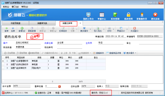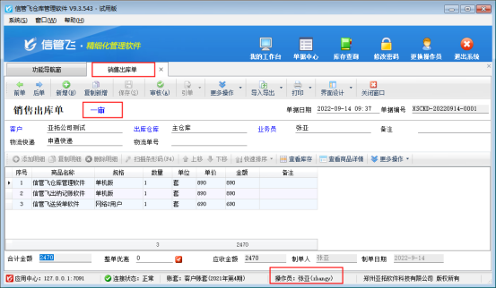 信管飛倉庫管理軟件、信管飛RMS軟件等支持新增多個操作員并可設置操作員權限,有用戶需要開銷售單需要多人審核,軟件支持設置多級審核,本文以“信管飛倉庫管理軟件”為例示范下單據多級審核功能如何使用?