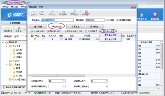 區別五:對于單據中已使用過的商品單位,星光版不支持修改,倉庫管理軟件支持。
