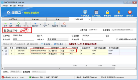 需要刪除訂單,需要先刪除對應的結算單,在訂單更多操作下點擊“查看定金及結銷情況”,彈出界面點擊“查看結算單”,進入收款結算單界面,可以紅沖作廢結算單,作廢后訂單可以正常紅沖刪除。作廢結算單后,對應的應收款需要重新結銷。