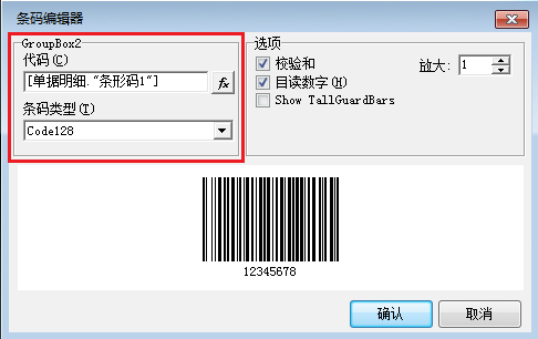進(jìn)入模板設(shè)計(jì)器界面,選中商品條形碼對(duì)應(yīng)的細(xì)項(xiàng)數(shù)據(jù)文本框,雙擊該文本框插入數(shù)據(jù)字段“單據(jù)明細(xì)·條形碼1”,預(yù)覽不需要調(diào)整保存即可,如下圖所示: