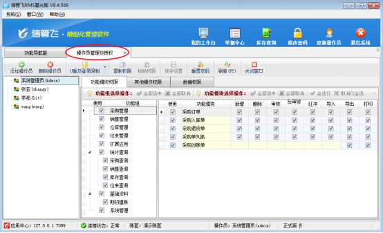 信管飛軟件操作員及授權(quán)實現(xiàn)對操作員的管理和權(quán)限分配。權(quán)限分為功能模塊權(quán)限、其他操作權(quán)限、數(shù)據(jù)權(quán)限等。另外部分權(quán)限(如資金賬戶權(quán)限)需要在“系統(tǒng)參數(shù)配置”中啟用相應(yīng)的參數(shù),才可以使用。