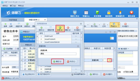 在功能導(dǎo)航欄點(diǎn)擊銷售管理---打開銷售出庫單,在開單界面點(diǎn)擊界面設(shè)計(jì),勾選擴(kuò)展信息并自定義列名為“顏色”,取值方式選擇“數(shù)據(jù)字典”,如圖所示: