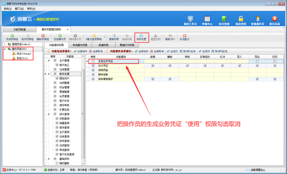 信管飛RMS如何設置操作員不可生成業務憑證?
