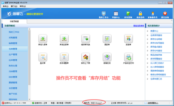 信管飛RMS如何設(shè)置操作員不可使用庫存月結(jié)功能?