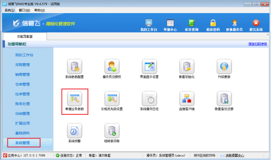 在功能導(dǎo)航窗點擊“系統(tǒng)管理”—》“系統(tǒng)參數(shù)配置”—》“業(yè)務(wù)參數(shù)”,業(yè)務(wù)單據(jù)相關(guān)參數(shù)下,打勾“啟用消息提醒功能”,保存設(shè)置,如下圖所示: