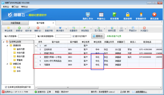 然后到“華中”類別下從新查看客戶信息,剛才的3個(gè)單位類別都已經(jīng)改變了,其界面如圖所示。