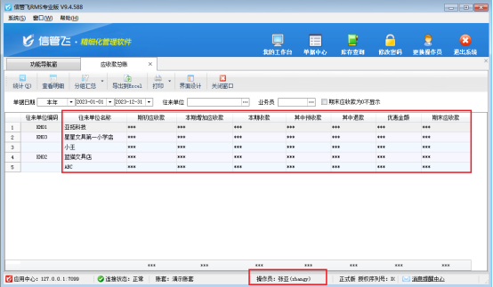 權(quán)限設(shè)置完成后,使用操作員賬號重新登陸軟件,應(yīng)收總賬界面可以顯示金額,如圖所示: