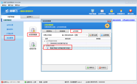 降序顯示有時用戶找之前的訂單需要往下拖動查找,為了用戶可以更方便地找到所需的歷史單據(jù),提高工作效率,軟件支持設(shè)置引單窗口單據(jù)日期按升序顯示。需要啟用下參數(shù)配置,在功能導(dǎo)航窗點擊“系統(tǒng)管理”—>“系統(tǒng)參數(shù)配置”,業(yè)務(wù)參數(shù)中勾選啟用參數(shù)“單據(jù)引單窗口按單據(jù)日期升序顯示”,保存參數(shù)配置,如下圖所示: