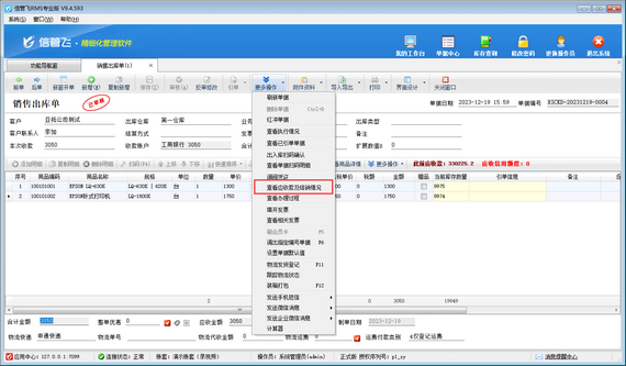 銷售出庫單保存審核完成后,在銷售出庫單界面工具欄點擊“更多操作”—》“查看應收款結銷情況”打開“應收應付及結算情況”窗口,如下圖所示。