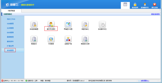 信管飛出納記賬軟件支持新增、修改現金/銀行日記賬憑證,有些客戶在使用過程中,不需要操作員進行新增,只用查看憑證即可,軟件支持設置操作員權限,本篇文章介紹下如何操作?
