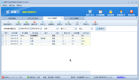 如何使用信管飛出納記賬軟件的計(jì)件工資管理功能?