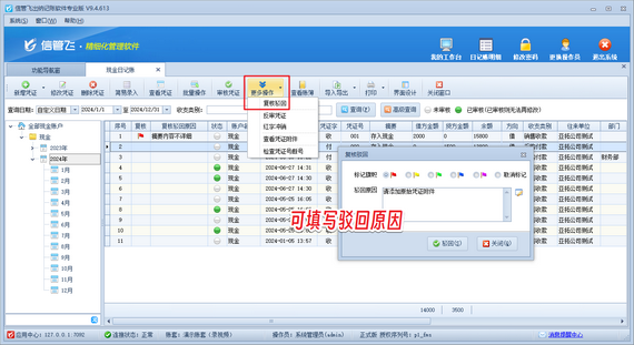 總之,信管飛出納記賬軟件的可復核駁回憑證功能,是中小企業提升財務管理效率、確保財務數據準確性的得力助手。隨著技術的不斷進步,信管飛將持續優化產品,為企業用戶提供更加智能、高效的財務管理解決方案。