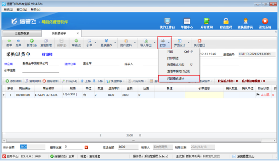 信管飛系列軟件支持自定義設(shè)計打印模板格式,打印預(yù)覽顯示正常,遇到紙張打印出來內(nèi)容缺失一部分的問題。以采購?fù)素泦未蛴∧0鍨槔痉断氯绾谓鉀Q打印缺失一部分內(nèi)容的問題?