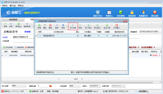 單據(jù)界面點擊打印----打印格式設(shè)計----點擊設(shè)計格式,進去模板設(shè)計器界面,在模板設(shè)計器界面調(diào)整打印紙張頁面設(shè)置。