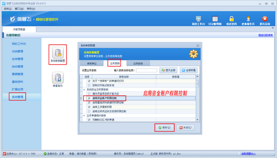 該軟件支持設(shè)置多個操作員,每個操作員僅能查看到自己負(fù)責(zé)的資金賬戶,有效解決了多人同時操作時的賬戶混淆問題。在系統(tǒng)參數(shù)配置界面,只需簡單勾選“啟用資金賬戶權(quán)限控制”參數(shù),即可開啟這一功能。