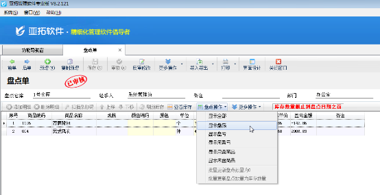企業的存貨因為數量較多、收發頻繁在實際管理過程中可能因為計量誤差、管理不善、自然損耗等原因而導致庫存數量與賬面數量不相符合。為了掌握貨物流動情況,核實賬面庫存數量與實際倉庫庫存數量是否一致,需要定期或不定期的對庫存數量進行清單盤查。實際工作中月底盤點時工作量相當大,亞拓管理軟件和亞拓倉庫管理軟件中提供的盤點單,可以直接錄入盤點清查數量(即實際倉庫庫存數量),軟