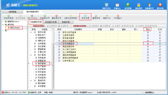 信管飛軟件支持設置多個操作員賬號并對操作員賬號設置權限,有用戶操作員賬號登錄時,庫存預警查詢界面會出現導出EXcel顯示灰色,無法進行導出的情況,這是由于操作員沒有導出權限造成的,本篇文章以“信管飛RMS專業版”為例介紹下如何解決? 使用系統管理員賬號登錄軟件,在功能導航窗點擊“系統管理”—》“操作員