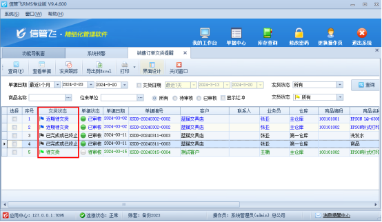 信管飛RMS軟件集進銷存管理于一體的軟件,支持智能預警功能,助您輕松應對各種挑戰,實現商業運營的智能化與高效化。 軟件支持用戶登錄后自動彈出預警提示界面,確保您每天都能掌握企業的最新動態。無論是交貨提醒、負庫存提醒,還是超出庫存上下限提醒,都能及時送達您的手中,讓您在第一時間做出決策,避免潛在的風險。