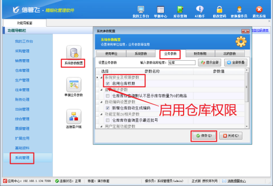 在使用信管飛軟件進行新增倉庫時,是否遇到過這樣的困擾:操作員在倉庫信息界面新增了倉庫,卻發現新增的倉庫信息如同“石沉大海”,根本無法顯示,這嚴重影響了工作效率,出現這種問題的主要原因在于該操作員賬號沒有分配到倉庫權限導致的,本篇文章介紹下如何解決? 首先,切換系統管理員登錄,功能導航窗點擊“系統管理”