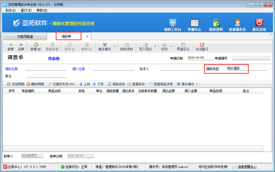 對于存在多個倉庫的企業來說,對不同倉庫的商品直接進行調撥,是一種很常見的業務。亞拓軟件下的進銷存軟件——亞拓管理軟件和亞拓倉庫管理軟件都支持分倉庫管理商品,其中亞拓管理軟件標準版和專業版、亞拓倉庫管理軟件都支持倉庫調撥功能,可以方便的進行倉庫之間的貨品轉移。 調撥分為同價調撥和變價調撥兩種,有客戶是一直采用一種調撥方式,軟件
