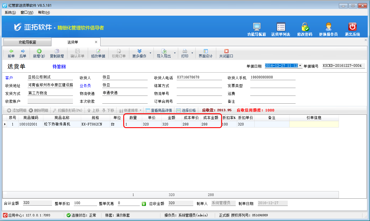 紅管家送貨單打印軟件是一款針對中小型企業(yè)開發(fā)的集送貨管理(發(fā)貨管理)、退貨管理(銷售退貨)、銷售收款(應(yīng)收款管理)等功能為一體的送貨管理及打印軟件(送貨單打印軟件、發(fā)貨單打印軟件、出貨單打印軟件、收據(jù)打印軟件、貨單票據(jù)打印軟件)。 商品成本是計算企業(yè)盈虧的依據(jù),送貨單軟件內(nèi)可以維護(hù)每個商品的成本價及統(tǒng)計每日、每月經(jīng)營情況、銷
