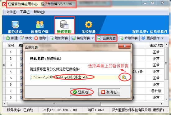 送貨單單機版指一人一臺電腦使用,使用時需要插入加密鎖,鑒于很多客戶有時候需要更換電腦使用,這次介紹下如何更換電腦使用。 送貨單單機版更換電腦需要首先把原來的電腦做好備份工作,備份是在電腦的應用中心(紅色圖標)上進行操作。備份時可以選擇備份的保存路徑,為了更清晰的看到備份數(shù)據(jù)方便拷貝,可以把備份路徑更改