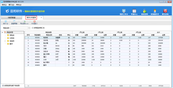 亞拓管理軟件(星光版、標準版、專業版)和紅管家倉庫管理軟件都可以對倉庫信息進行管理,都可以查詢商品庫存數量。軟件支持建立多個倉庫,可以統計商品在不同倉庫的庫存分布情況。支持按照商品名稱、商品類別等條件進行匯總。本篇文章以亞拓管理軟件專業版為例介紹一下如何查詢商品庫存分布情況。 在功能導航窗點“倉庫管理”—》“相關查詢統計”—