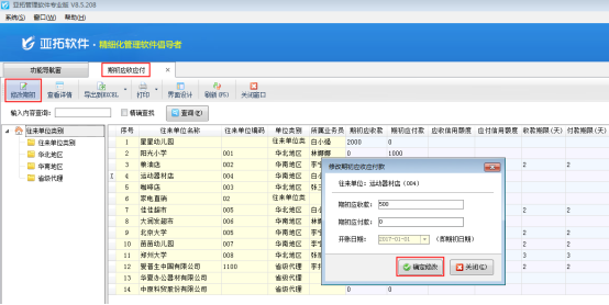 紅管家送貨單軟件包括應收款管理功能,可以對客戶設置應收信用額;亞拓管理軟件(星光版、標準版、專業版)包括應收應付款管理功能,可以對客戶及供應商設置應收應付款信用額,另外,亞拓管理軟件標準版和專業版還可以在往來管理模塊中的“相關查詢統計”中進行信用額度超限報警查詢。我們以亞拓管理軟件專業版為例,介紹如何設置往來單位的信用額度。