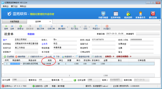 亞拓管理軟件、紅管家送貨單軟件、倉庫管理軟件都支持在“基礎資料”—》“商品信息”中維護商品的規(guī)格信息,軟件默認允許開單可以直接在單據明細中修改商品規(guī)格,為了避免開單修改商品規(guī)格,軟件可以設置開單時單據明細中的商品規(guī)格不允許修改,我們以送貨單軟件為例示范下如何設置? 首先我們在“基礎資料”—》“商品信息