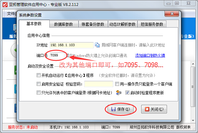 亞拓軟件開發的紅管家系列軟件和亞拓系列軟件,均采用先進的多層技術體系架構,程序運行安全、穩定、高效。客戶端程序與服務器端程序(即“亞拓軟件應用中心”程序)進行通訊,需要設置通訊端口,其中紅管家軟件(V8.0版本以前需要開放兩個通訊端口,V8.0及以后版本僅需要一個通訊端口)、亞拓管理軟件和亞拓倉庫管理軟件僅需要一個通訊端口。以下以“亞拓管理軟件”為例說明如何配置通訊端口,